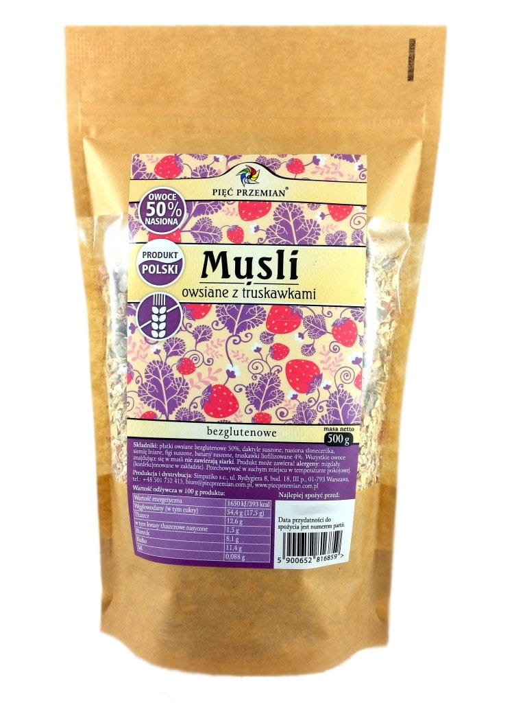 PIĘĆ PRZEMIAN Musli owsiane z truskawkami bezglutenowe 500g