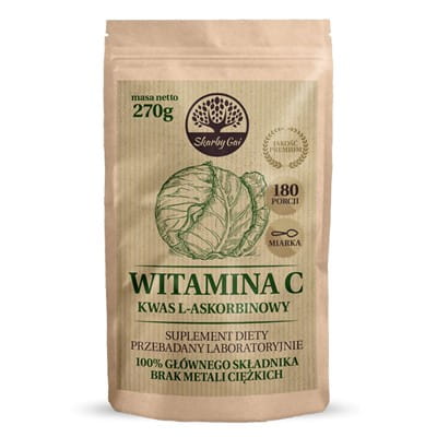 Witamina C - kwas L-askorbinowy - suplement diety - pozyskany z kapusty i naturalnych składników roślinnych. Wyprodukowany metodą dwustopniowej BI-Fermentacji.